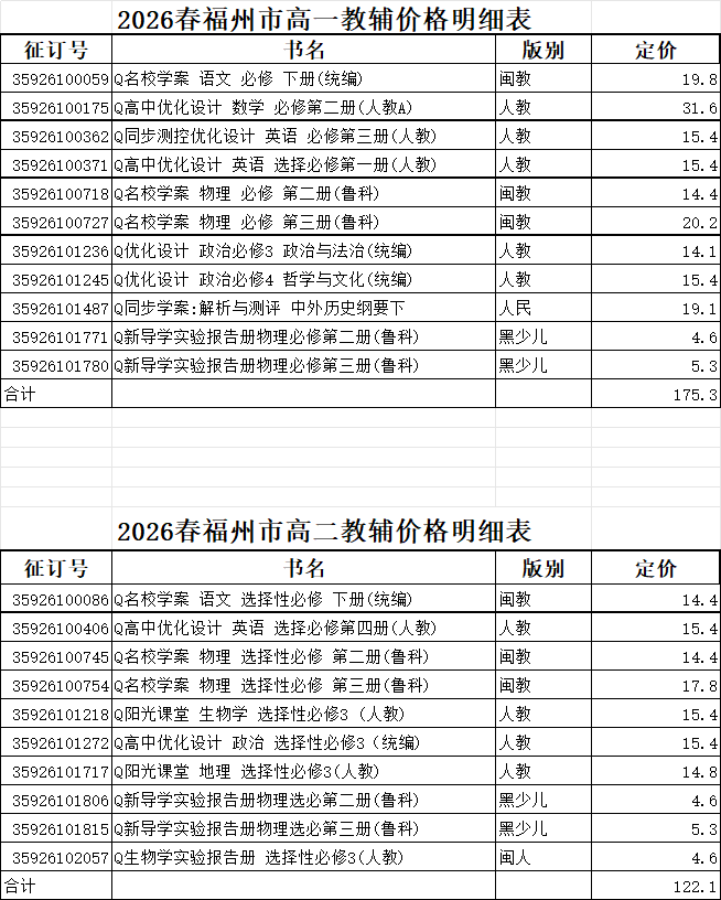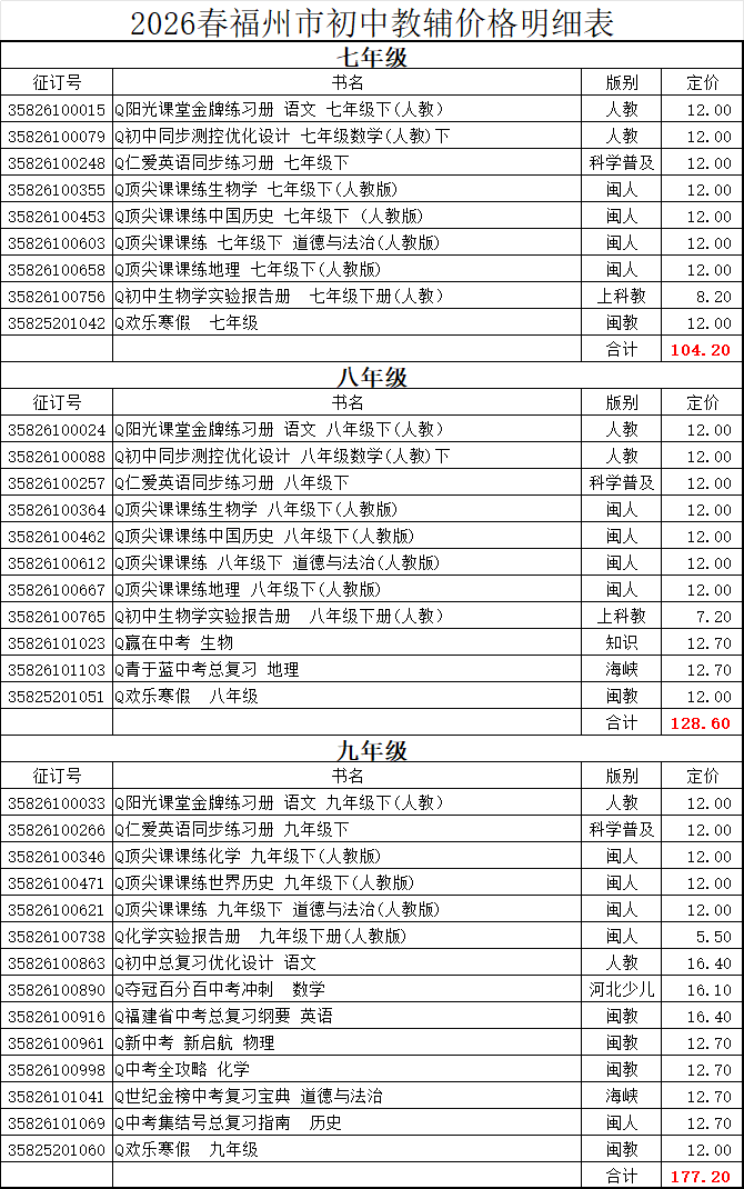 2026春教辅价格公示